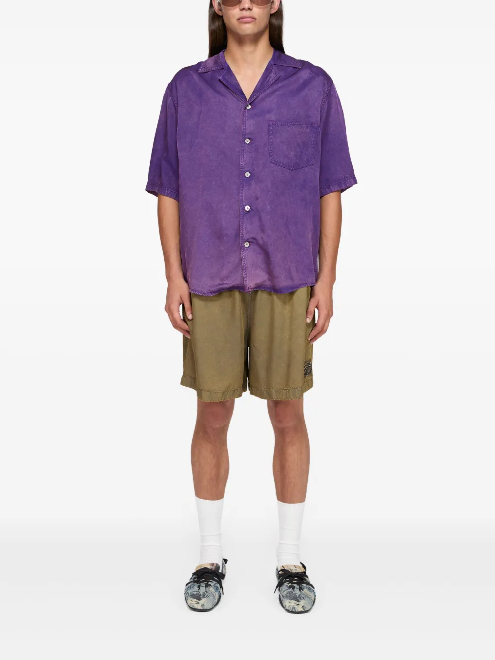 licht olijfgroen elastische tailleband met trekkoord twee ingenaaide zijzakken twee opgestikte achterzakken gebleekt effect Zwemkleding moet over je eigen kleding worden aangepast.