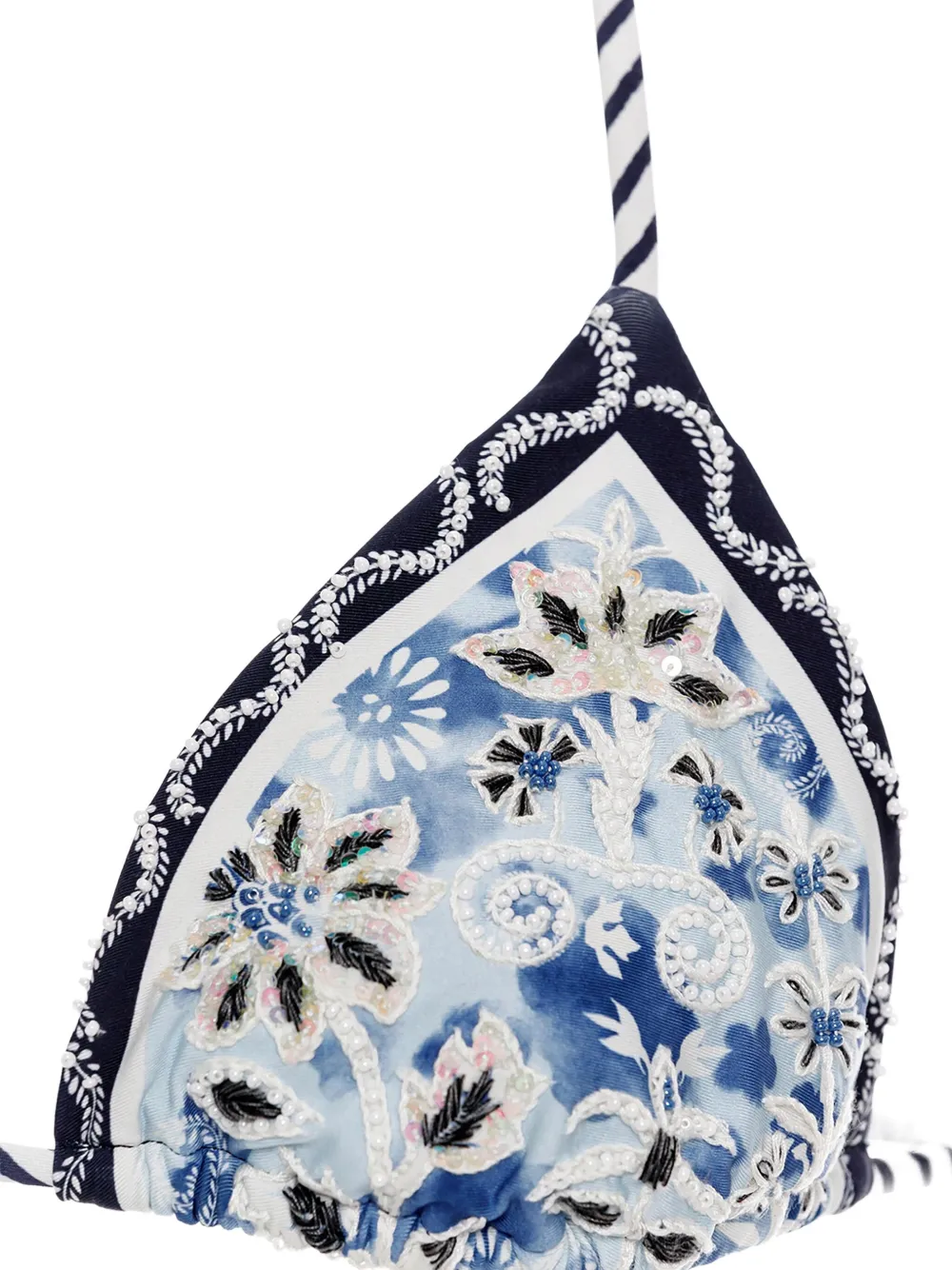 blauw verfraaid met kralen triangelvormige top verstelbaar bandje Zwemkleding moet over je eigen kleding worden aangepast.