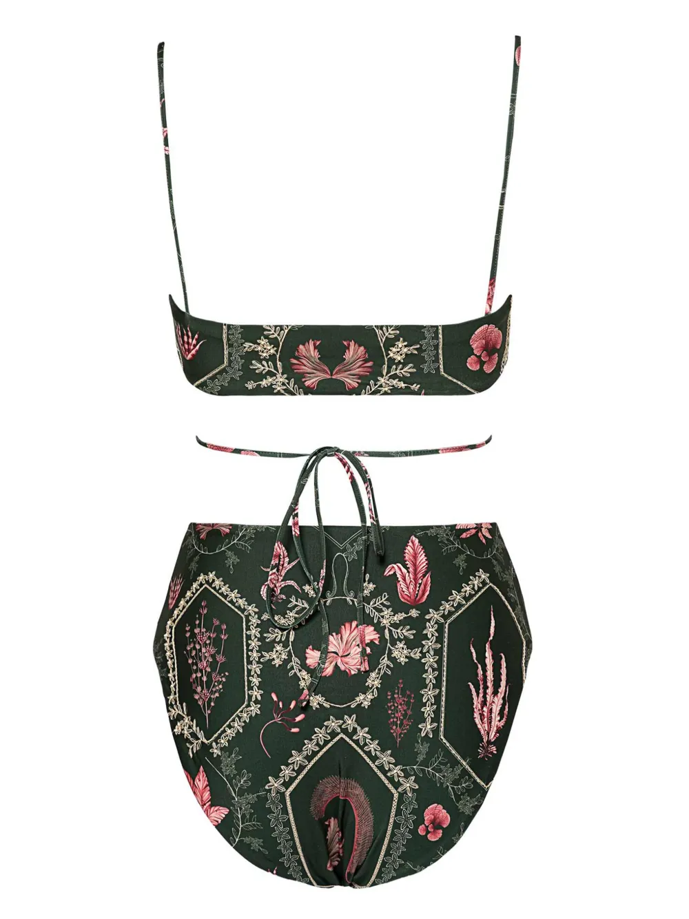 donkergroen/kauwgomroze gerecyclede polyesterblend uitgesneden detail all-over bloemenprint vierkante hals striksluiting aan de achterkant Zwemkleding moet over je eigen kleding worden aangepast.