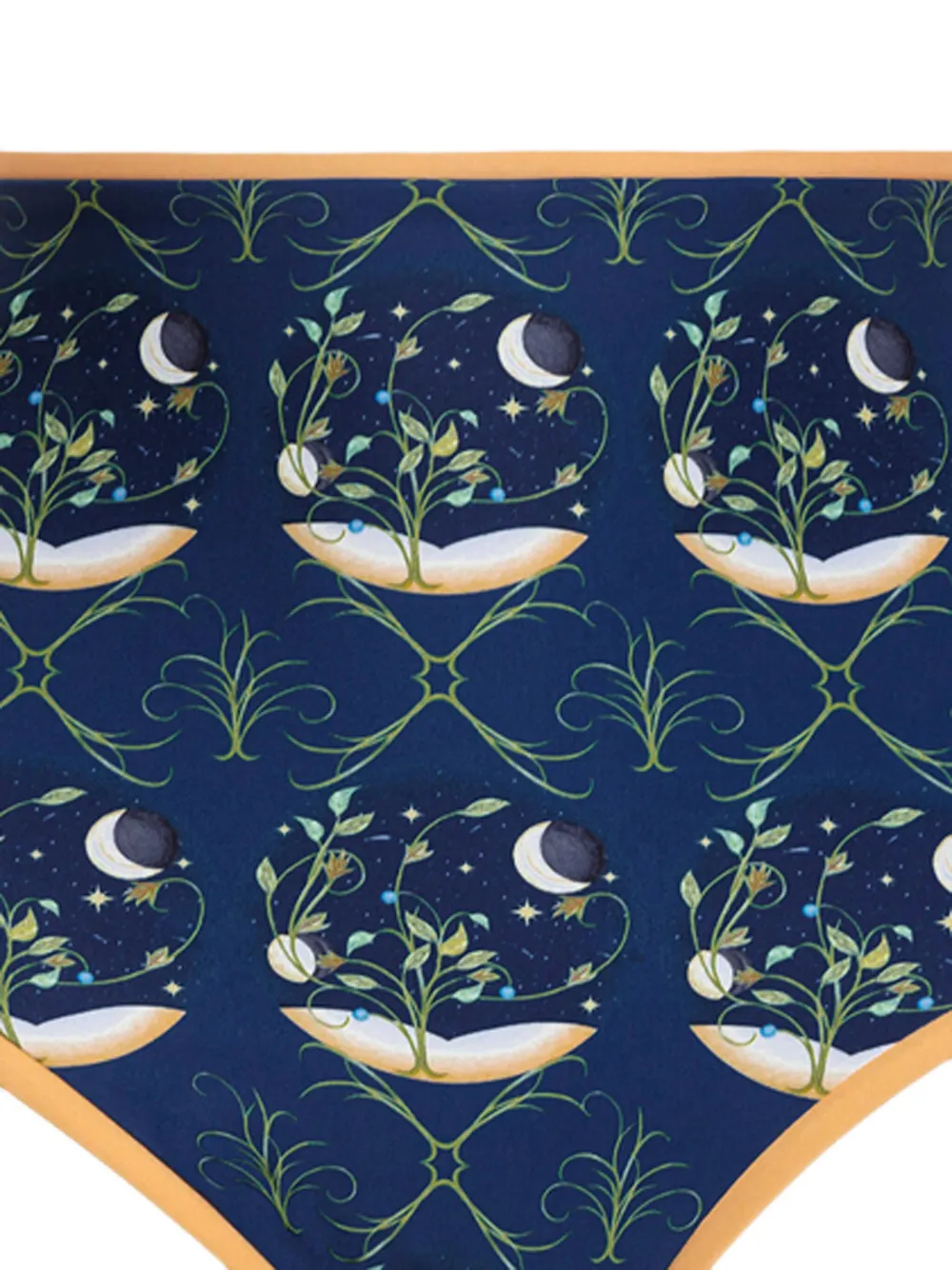 Blauw, gerecyclede polyestermix, stretch design, monogram patroon, high-waist en zoom afwerking. Zwemkleding moet over je eigen kleding worden aangepast.. .