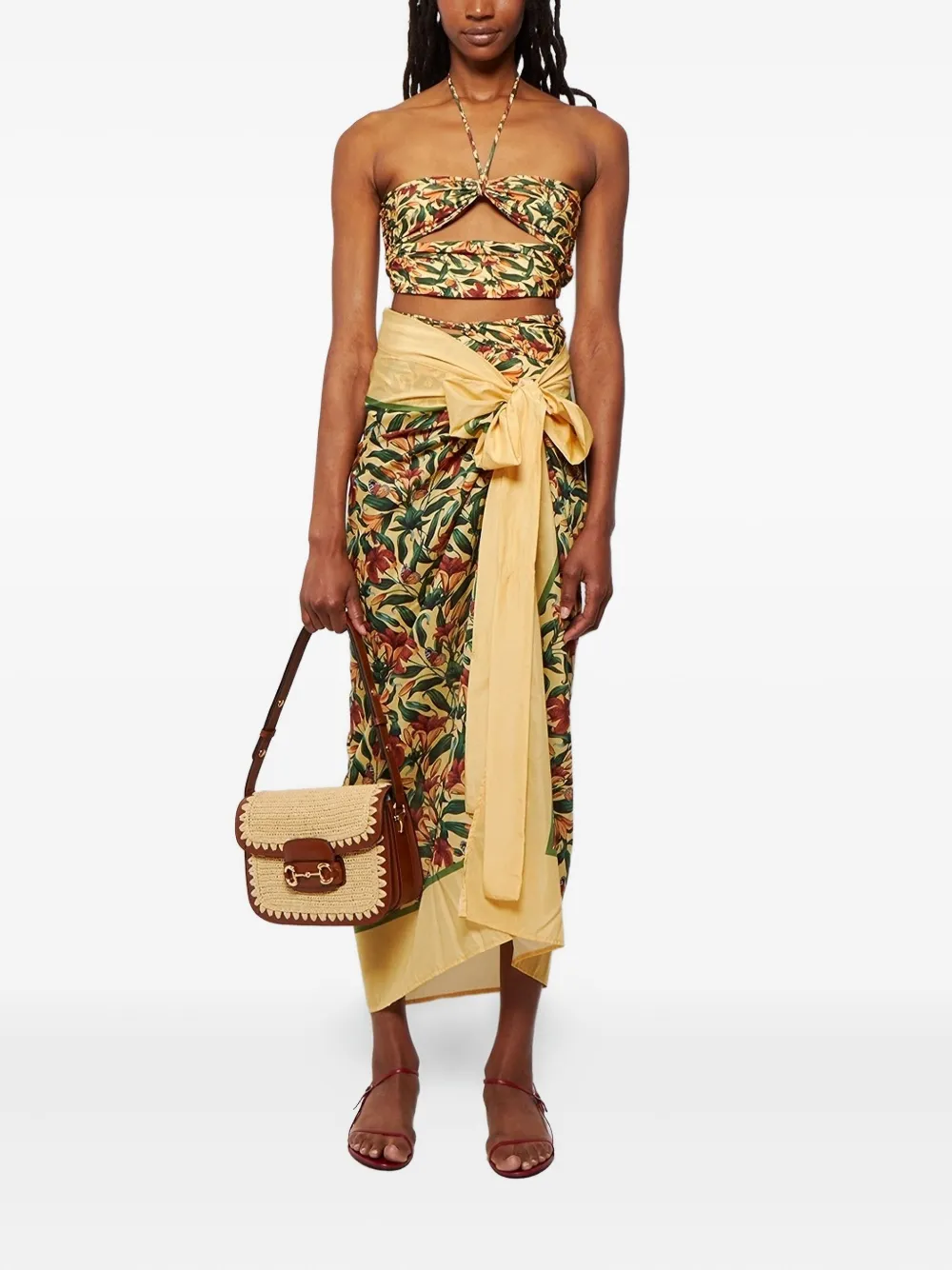 geel bloemenprint high waist strik aan de zijkant uitgesneden detail ruchedetails Zwemkleding moet over je eigen kleding worden aangepast.