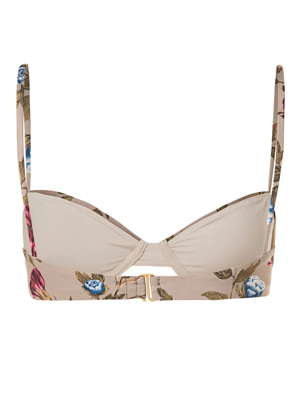taupe gerecyclede polyesterblend stretch design haaksluiting aan de achterkant all-over bloemenprint dunne schouderbandjes sweetheart-hals beugelbh Zwemkleding moet over je eigen kleding worden aangepast.