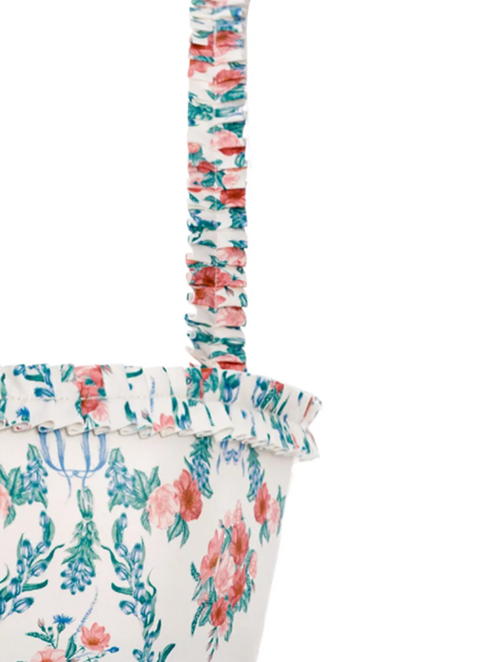 wit bloemenprint ruche afwerking Zwemkleding moet over je eigen kleding worden aangepast.