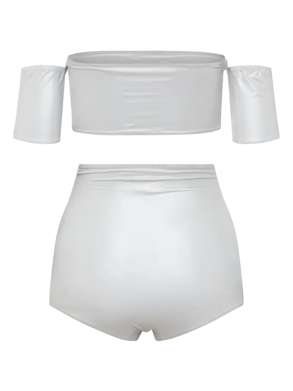 wit bandeau afneembare mouwen high waist bikinibroek Zwemkleding moet over je eigen kleding worden aangepast.