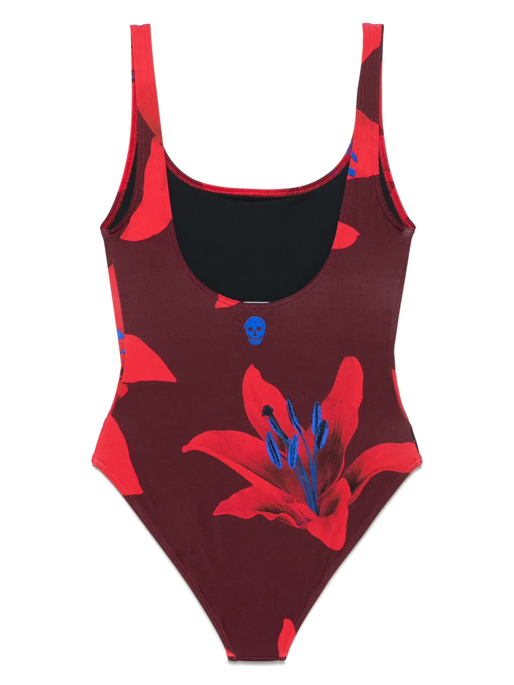 bordeauxrood lage rug volledige voering doodskopprint aan de achterkant Zwemkleding moet over je eigen kleding worden aangepast.