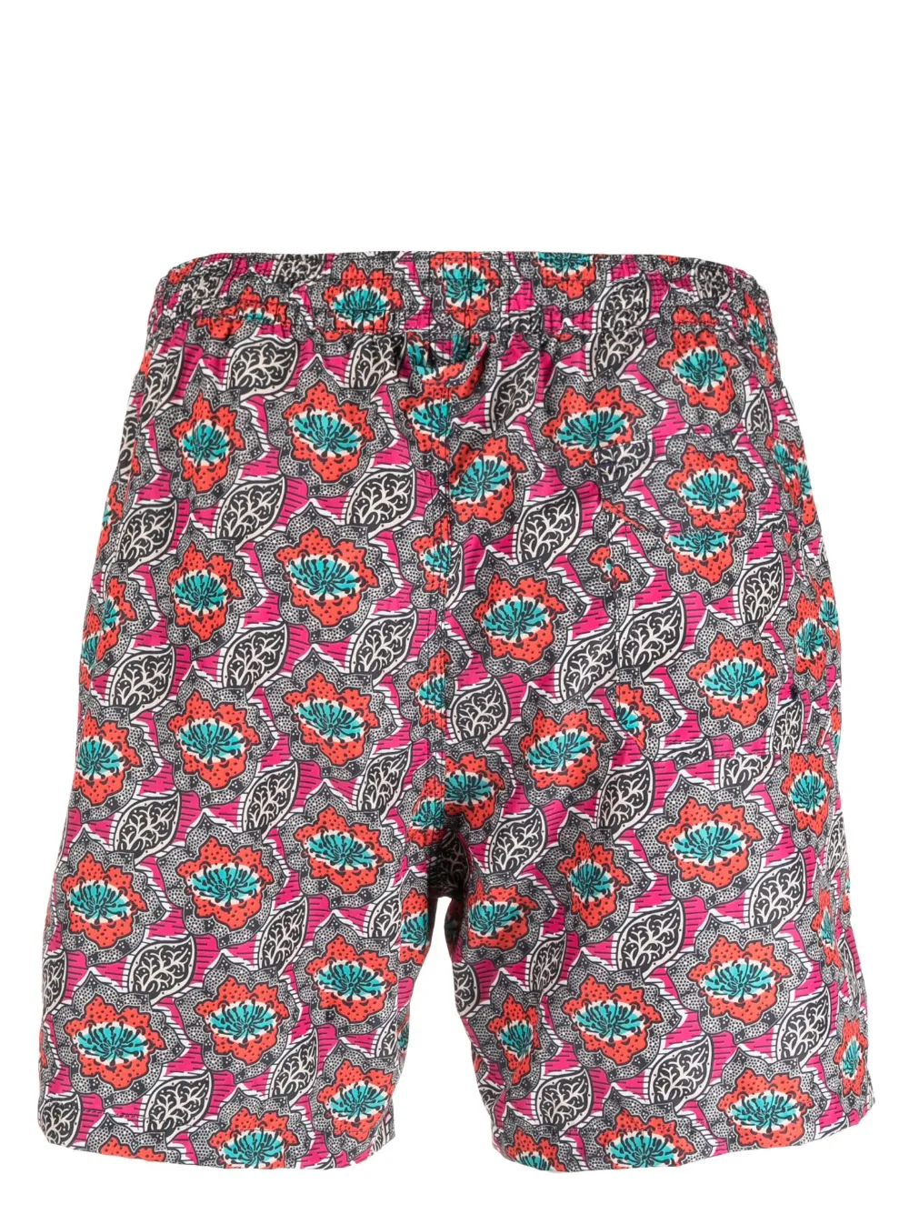Veelkleurig, all-over bloemenprint, elastische tailleband met trekkoord, achterzak met klep en rechte zoom. Zwemkleding moet over je eigen kleding worden aangepast..