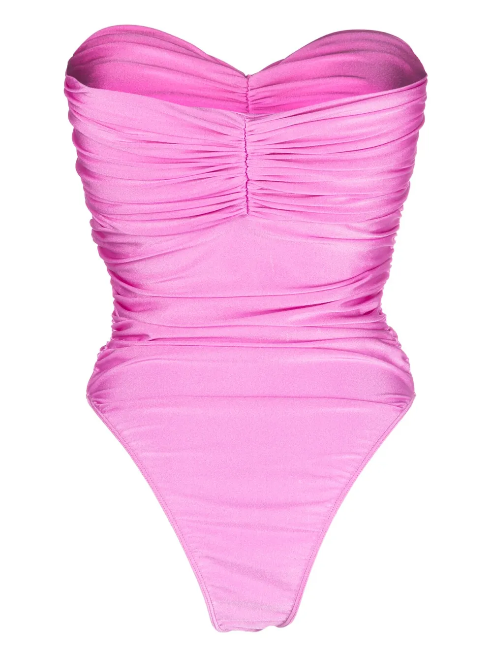 Sering, ruchedetails, strapless en uitgesneden detail . Zwemkleding moet over je eigen kleding worden aangepast..