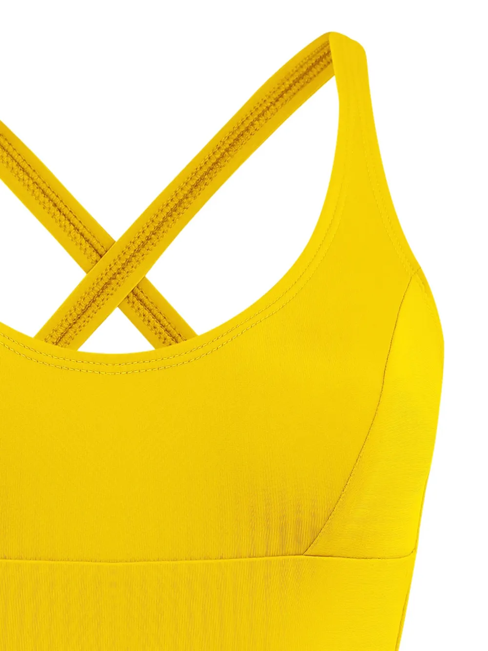 zonnebloemgeel stretch design gekruiste bandjes aan de achterkant instapmodel ronde hals mouwloos open rug Zwemkleding moet over je eigen kleding worden aangepast.