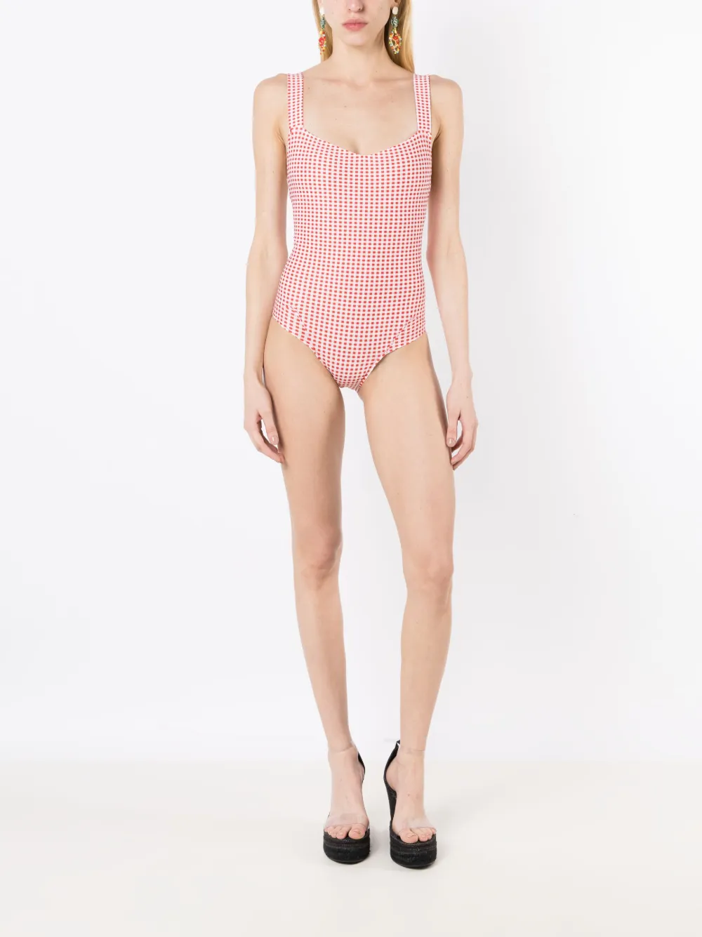 Gingham ruit en brede schouderbandjes. Zwemkleding moet over je eigen kleding worden aangepast..