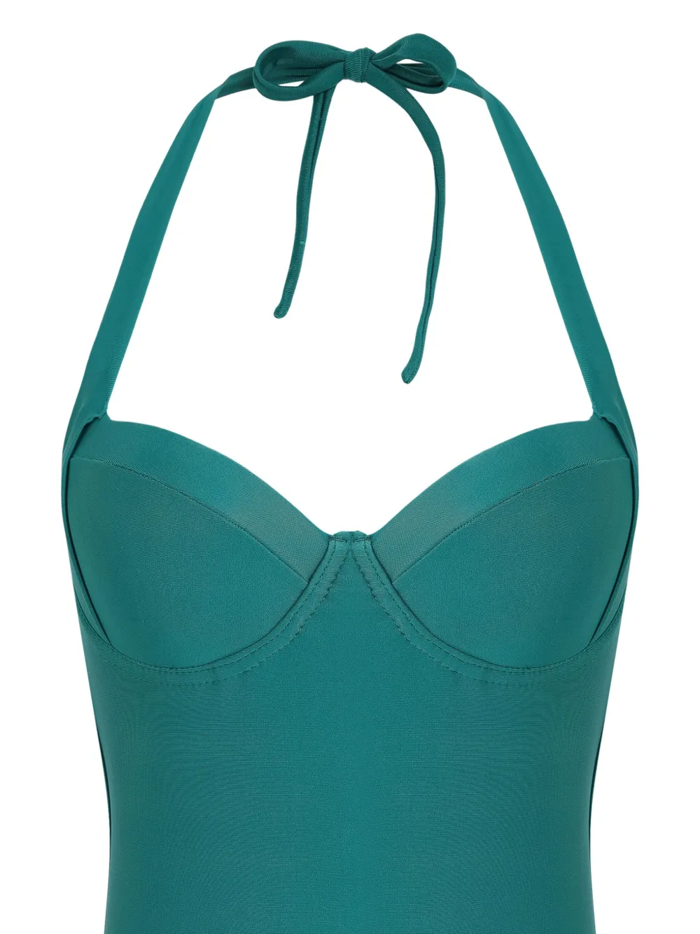 groen stretch design halternek striksluiting beugelbh open rug striksluiting aan de achterkant Zwemkleding moet over je eigen kleding worden aangepast.