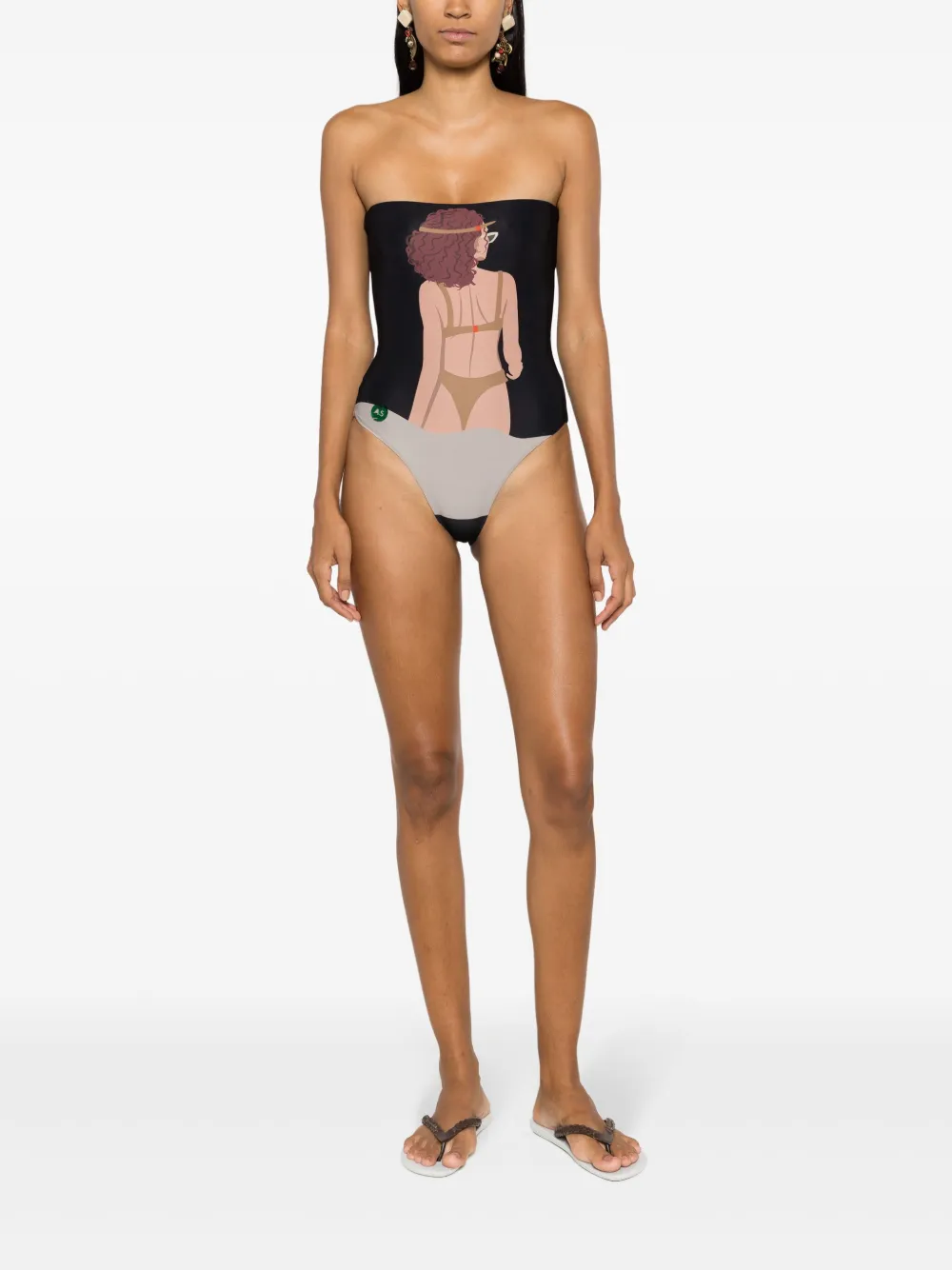 zwart/veelkleurig stretch design all-over grafische print strapless striksluiting aan de achterkant Zwemkleding moet over je eigen kleding worden aangepast.