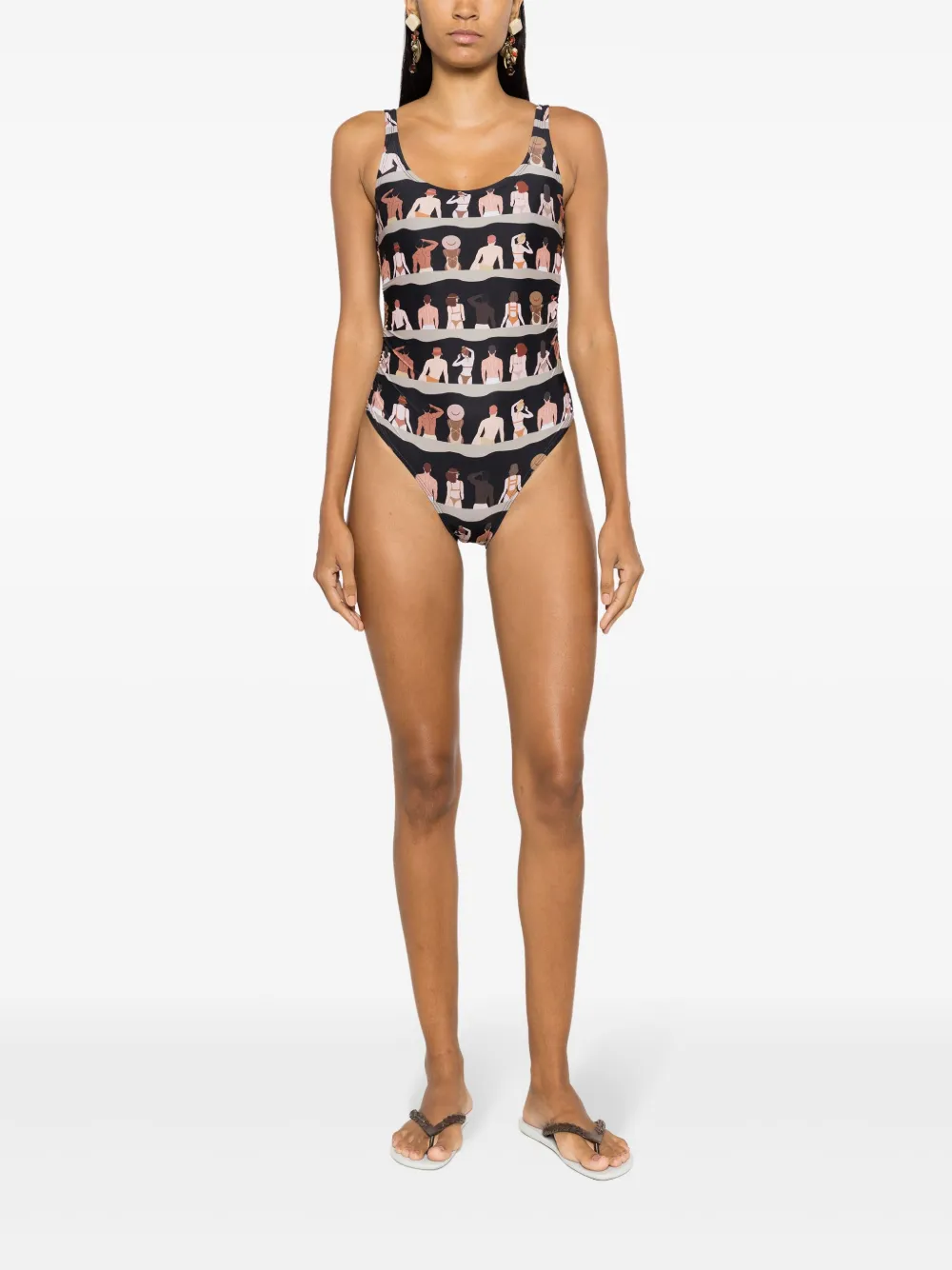 zwart/veelkleurig stretch design all-over grafische print ronde hals open rug Zwemkleding moet over je eigen kleding worden aangepast.
