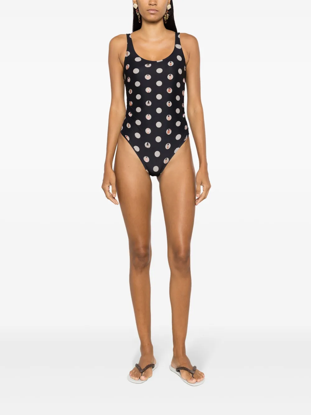 zwart/veelkleurig stretch design all-over grafische print ronde hals open rug Zwemkleding moet over je eigen kleding worden aangepast.