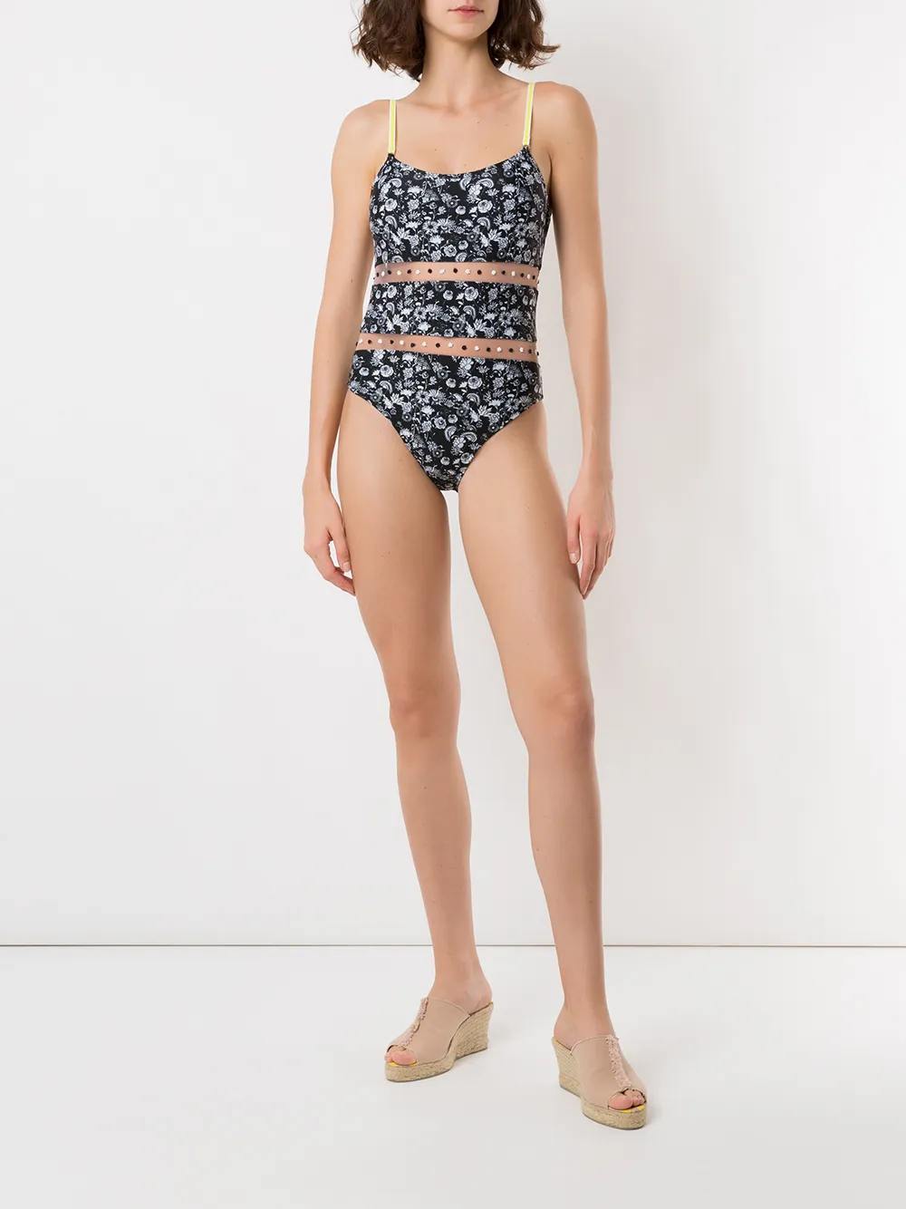 Badpak met print van Amir Slama voorzien van u-halslijn, spaghettibandjes, tulle inzetstukken, een all-over print, striksluiting achterzijde, elastische bies en voering. Dit artikel valt normaal qua maat. De print kan enigszins afwijken van het afgebeelde artikel. Zwemkleding moet over uw eigen kleding aan worden gepast.