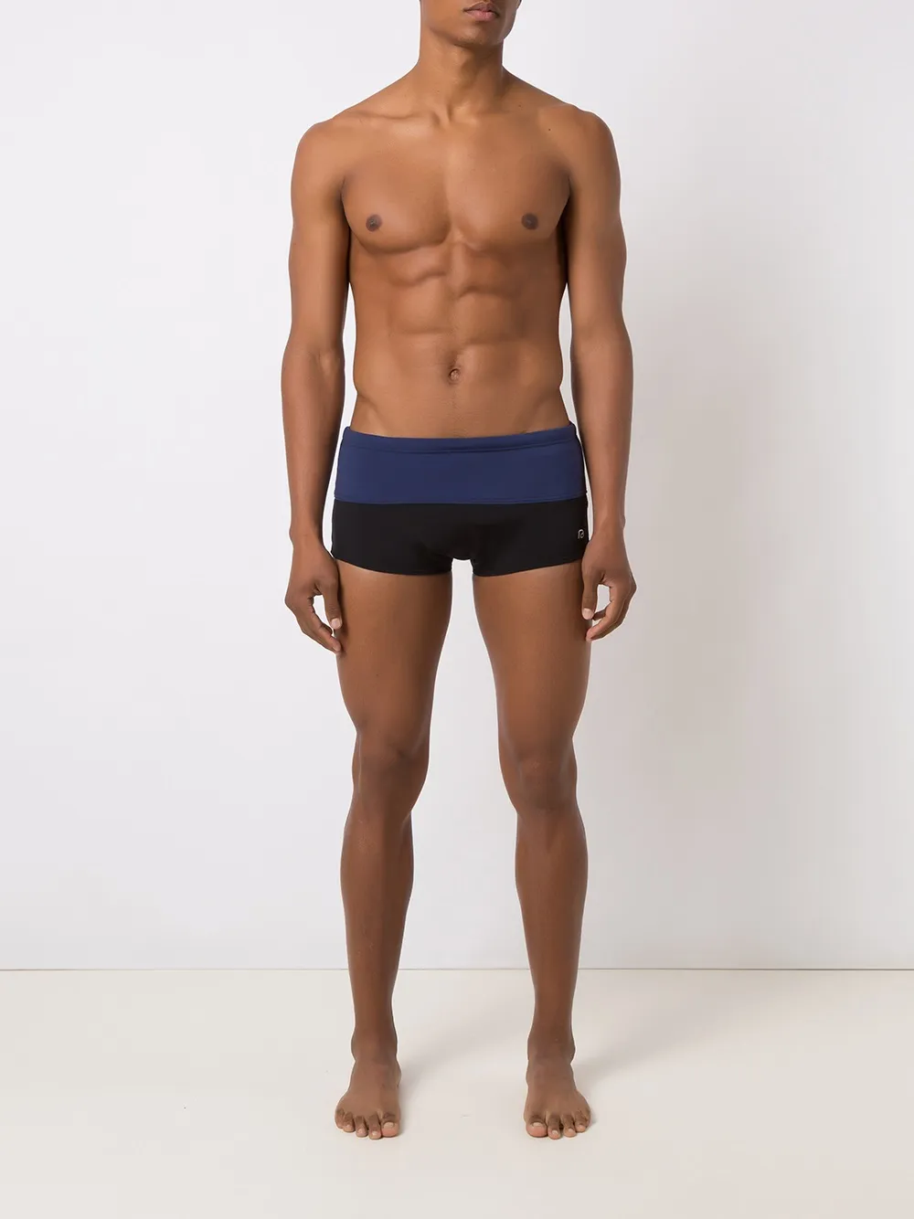 Bicolor s van Amir Slama voorzien van elastische tailleband met trekkoord en contrasterende inzetstukken. Zwemkleding moet over uw eigen kleding aan worden gepast.