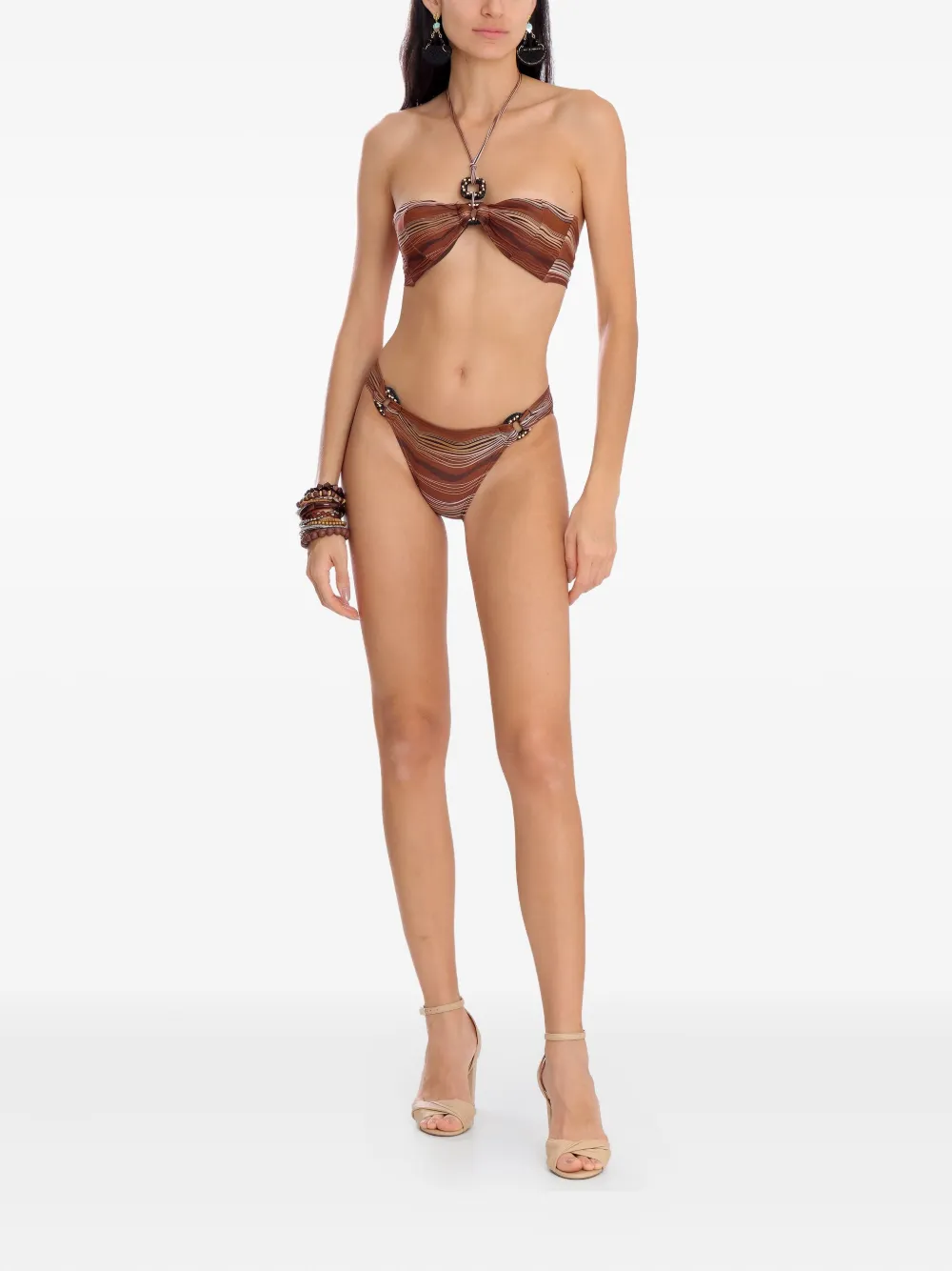 bruin gestreept patroon halternek ringdetail verfraaide gesp striksluiting Zwemkleding moet over je eigen kleding worden aangepast.