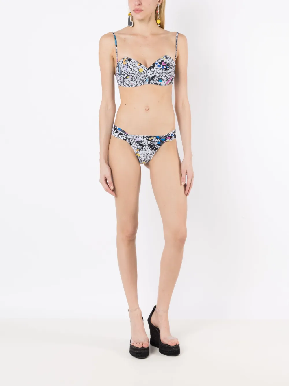 Zwart/veelkleurig, stretch design, all-over grafische print, sweetheart-hals, sluiting aan de achterkant, mouwloos en elastische tailleband. Zwemkleding moet over je eigen kleding worden aangepast..