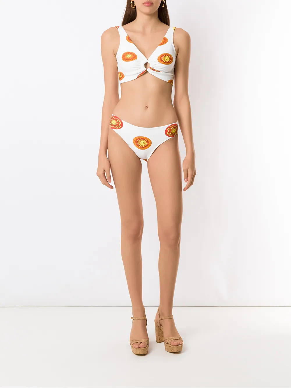 grafische print , mouwloos en gespsluiting aan de achterkant. Zwemkleding moet over je eigen kleding worden aangepast.