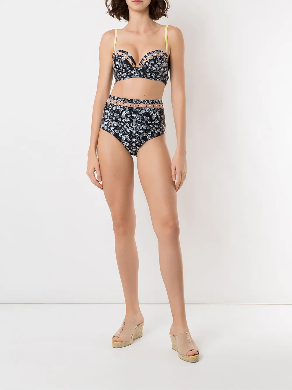 Bikini met print van Amir Slama voorzien van balconette top, beugel-bh, verstelbare smalle bandjes, striksluiting achterzijde, taille slip, een all-over print, elastische bies en voering. Dit artikel valt normaal qua maat. De print kan enigszins afwijken van het afgebeelde artikel. Zwemkleding moet over uw eigen kleding aan worden gepast.