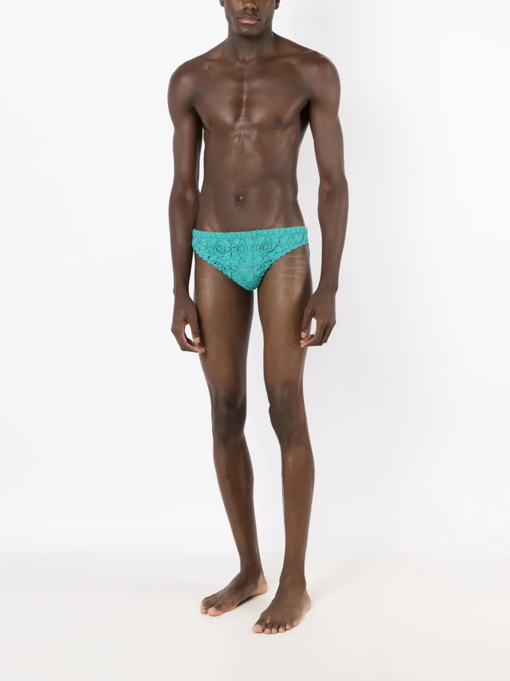 Aqua groen, stretch design, discrete stiksels, gehaakt en elastische tailleband. Zwemkleding moet over je eigen kleding worden aangepast..