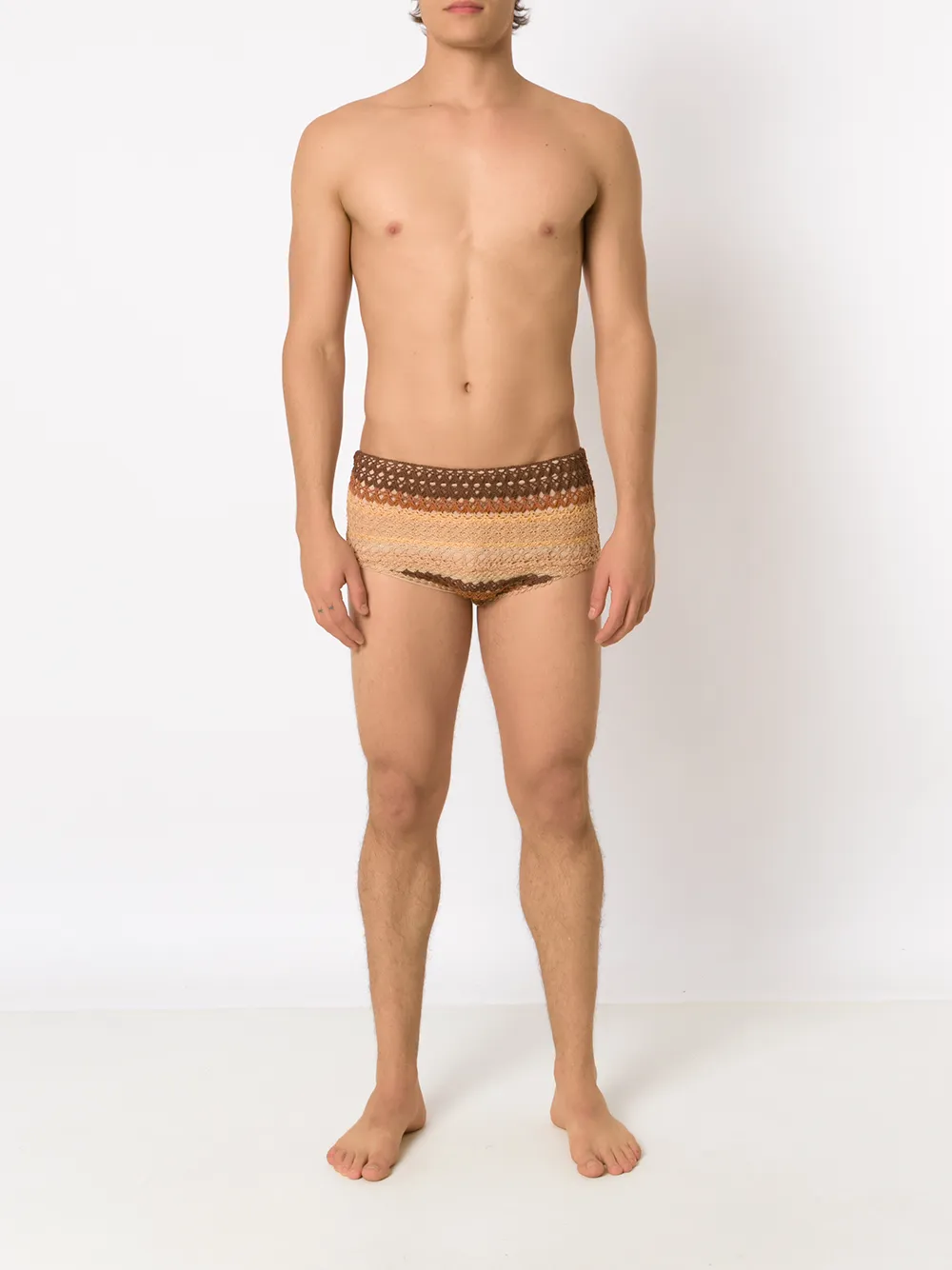 Gehaakt design, mid waist en stretch design. Zwemkleding moet over je eigen kleding worden aangepast.