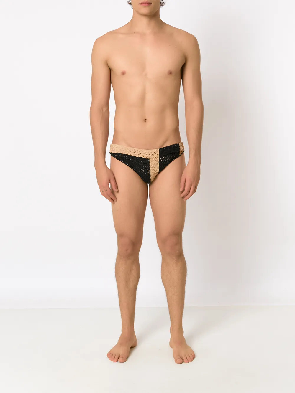 Tweekleurig design, gehaakt design, low waist en stretch design. Zwemkleding moet over uw eigen kleding worden aangepast. Doe dit niet als u eenmaal het water in springt.