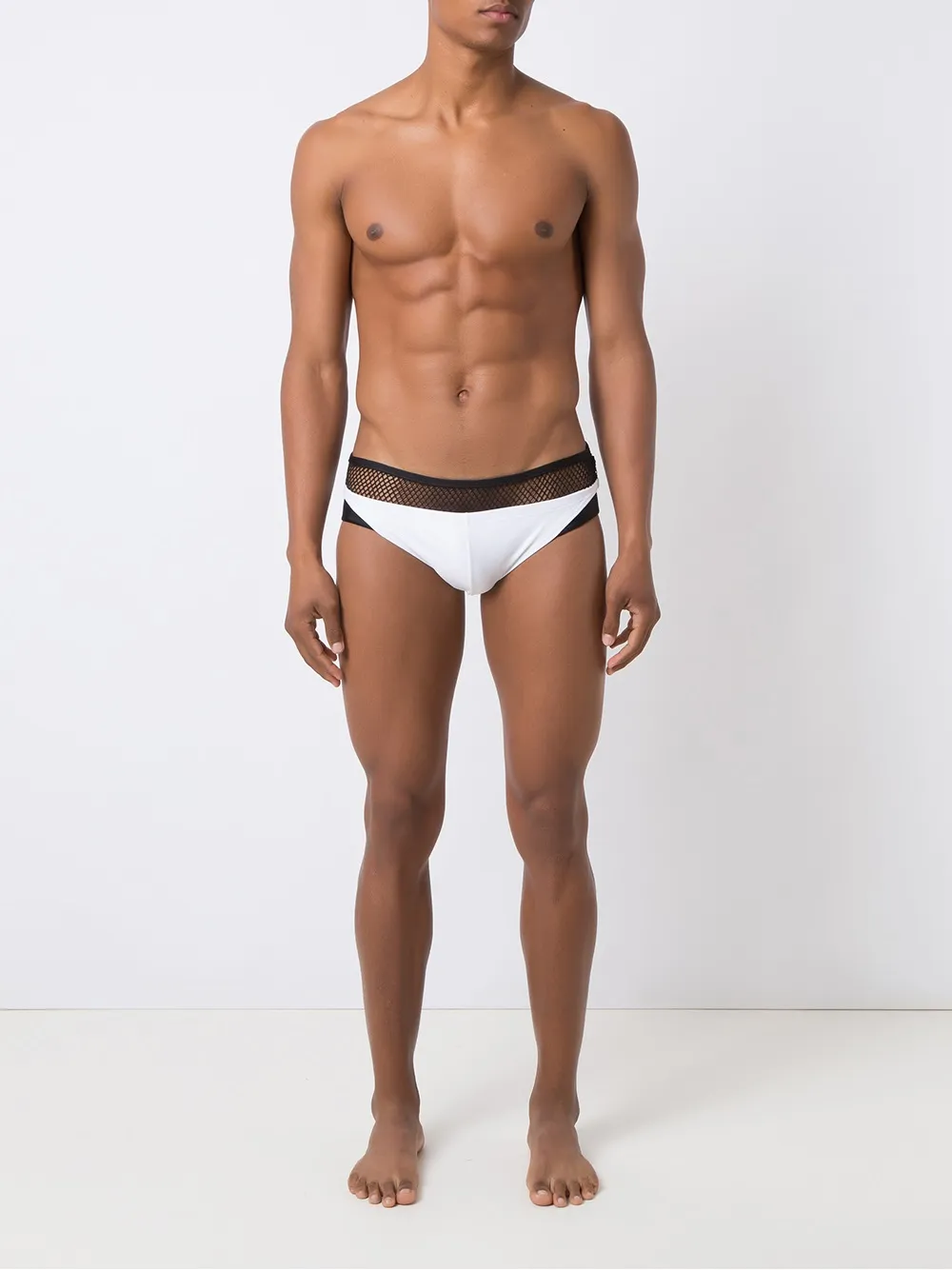 Roosterpaneel s van Amir Slama voorzien van contrasterende inzetstukken. Zwemkleding moet over uw eigen kleding aan worden gepast.