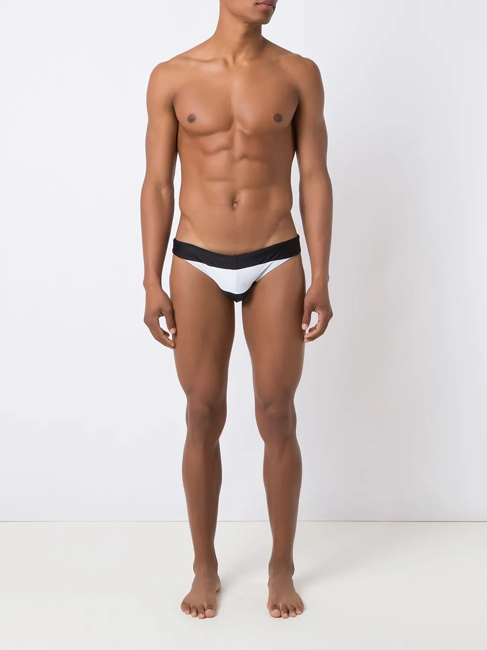 Tweekleurige korte broek van Amir Slama voorzien van contrasterende inzetstukken. Zwemkleding moet over uw eigen kleding aan worden gepast.