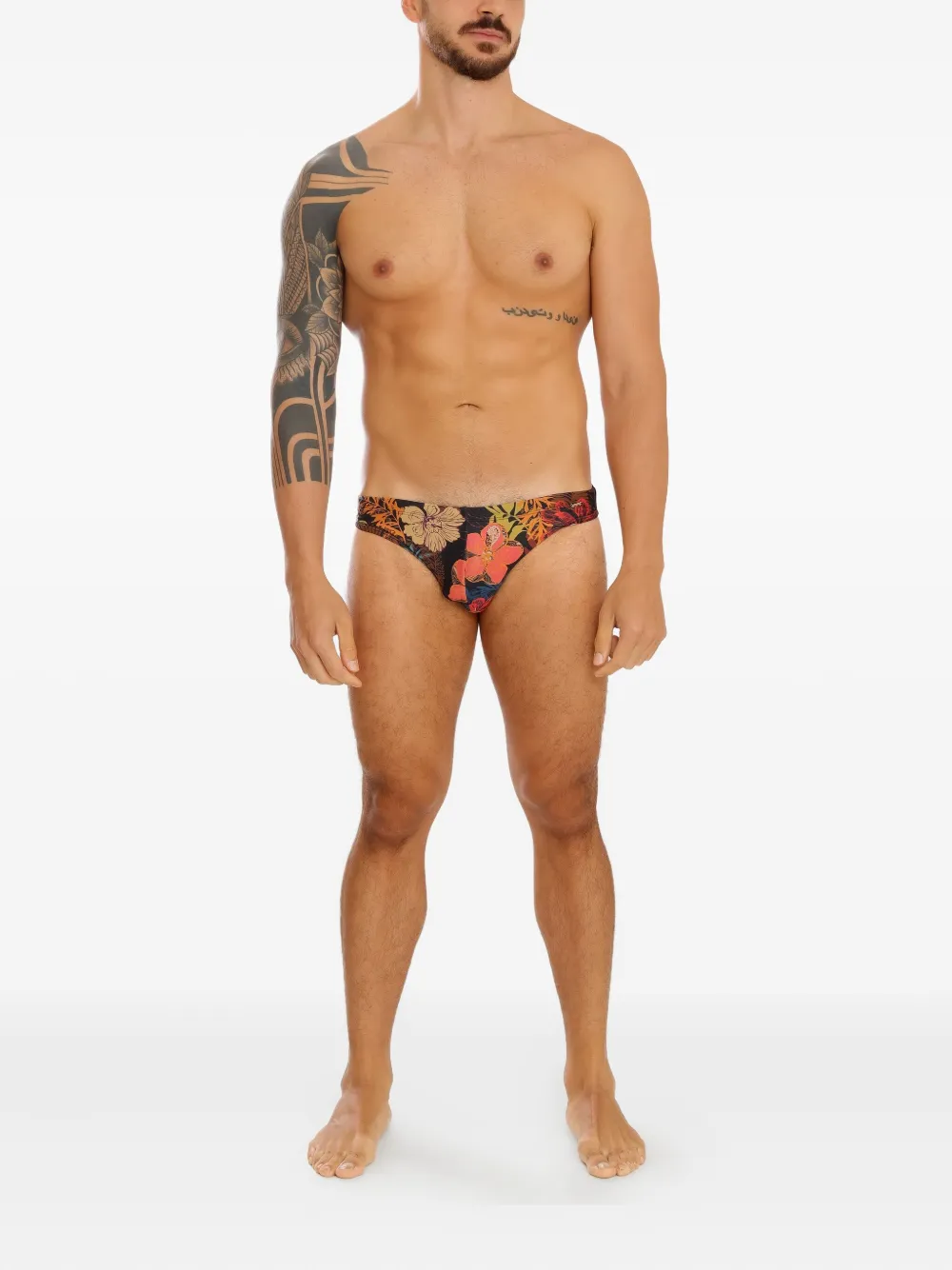 zwart bloemenprint low-rise elastische tailleband volledige dekking aan de achterkant Zwemkleding moet over je eigen kleding worden aangepast.