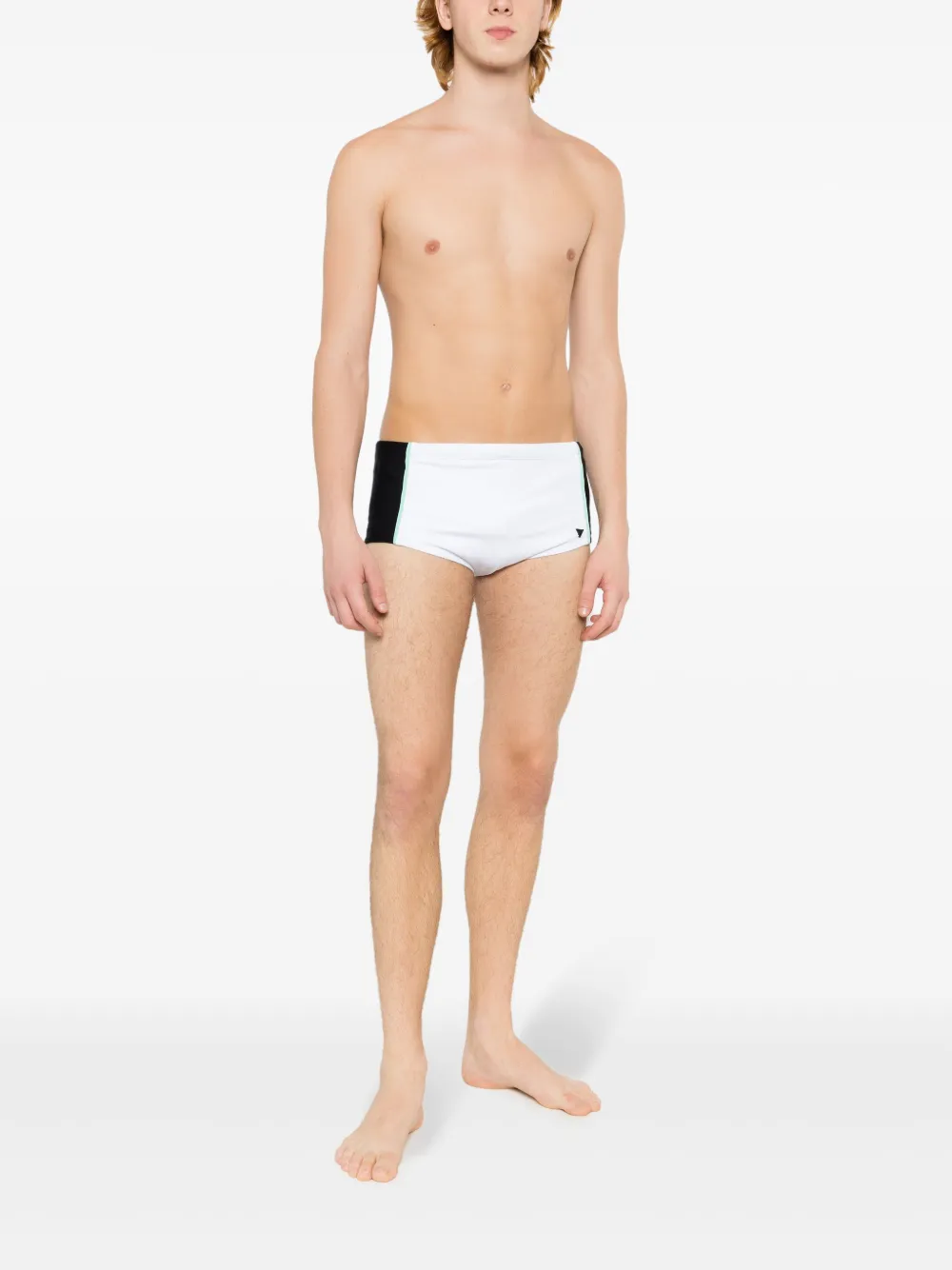 wit/zwart stretch design logo applicatie vlakken biesdetail elastische tailleband instapmodel Zwemkleding moet over je eigen kleding worden aangepast.