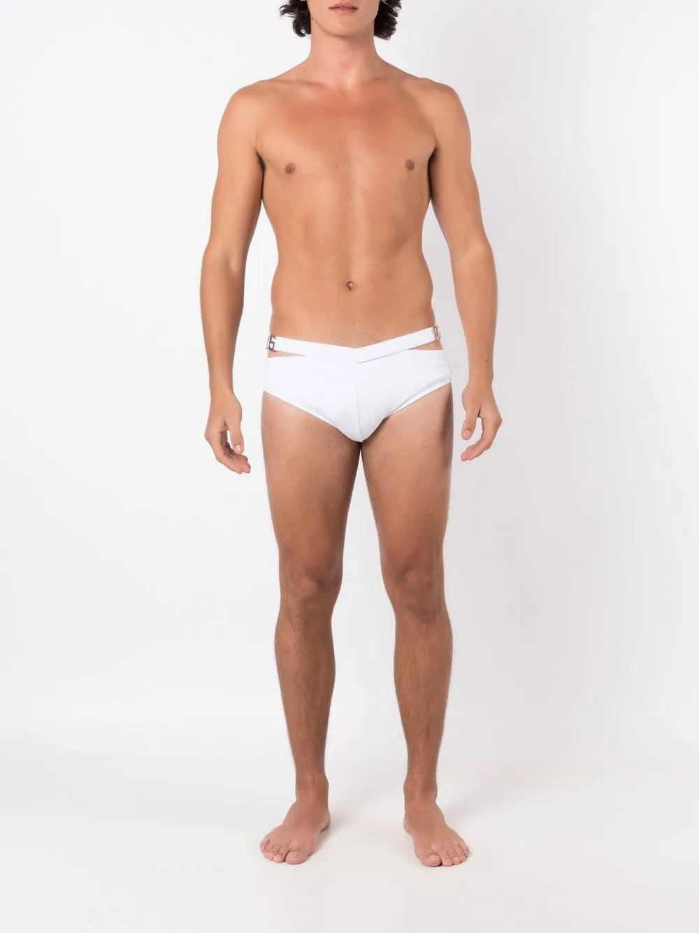 Wit, getextureerde afwerking, uitgesneden detail en stretch design. Zwemkleding moet over je eigen kleding worden aangepast..