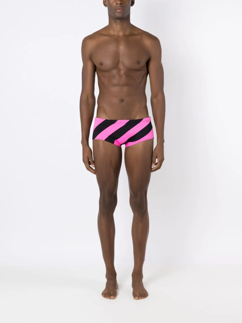 Zwart, roze, print met diagonale strepen, stretch design en low waist. Zwemkleding moet over je eigen kleding worden aangepast..