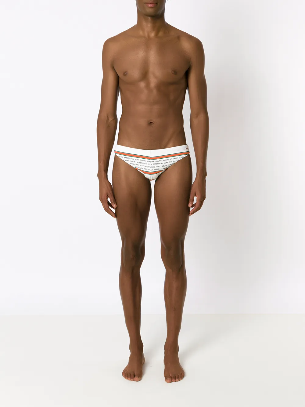 Gestreept detail, slogan print, elastische tailleband en stretch design. Zwemkleding moet over uw eigen kleding worden aangepast. Doe dit niet als u eenmaal het water in springt.