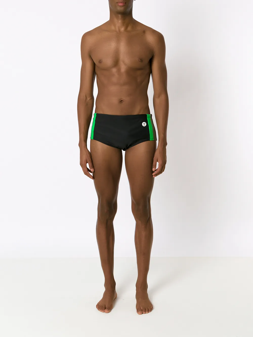 Zijstreep, logopatch aan de voorzijde en elastische tailleband. Zwemkleding moet over je eigen kleding worden aangepast.