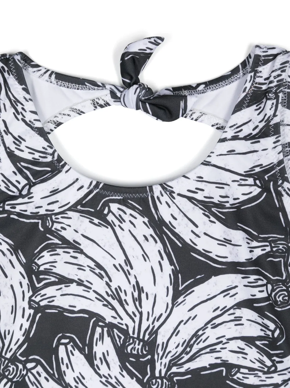 zwart/wit stretch design bananenprint ronde hals striksluiting aan de achterkant open rug mouwloos elastische tailleband aan de achterkant Zwemkleding moet over je eigen kleding worden aangepast. ^