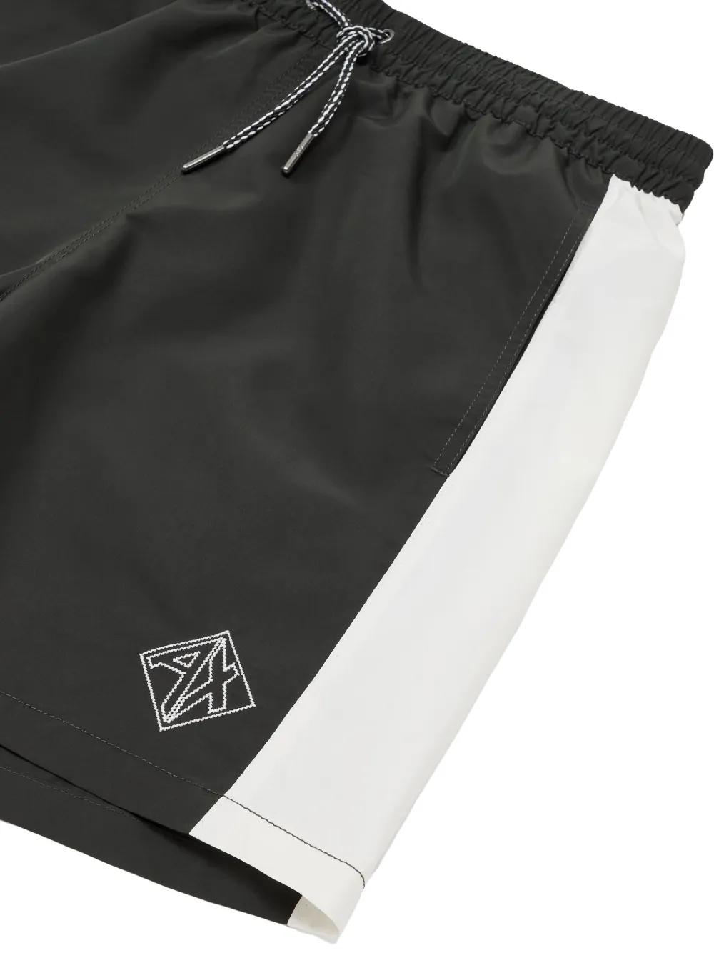 zwart elastische tailleband met trekkoord tweekleurig design twee steekzakken aan de zijkant Zwemkleding moet over je eigen kleding worden aangepast.