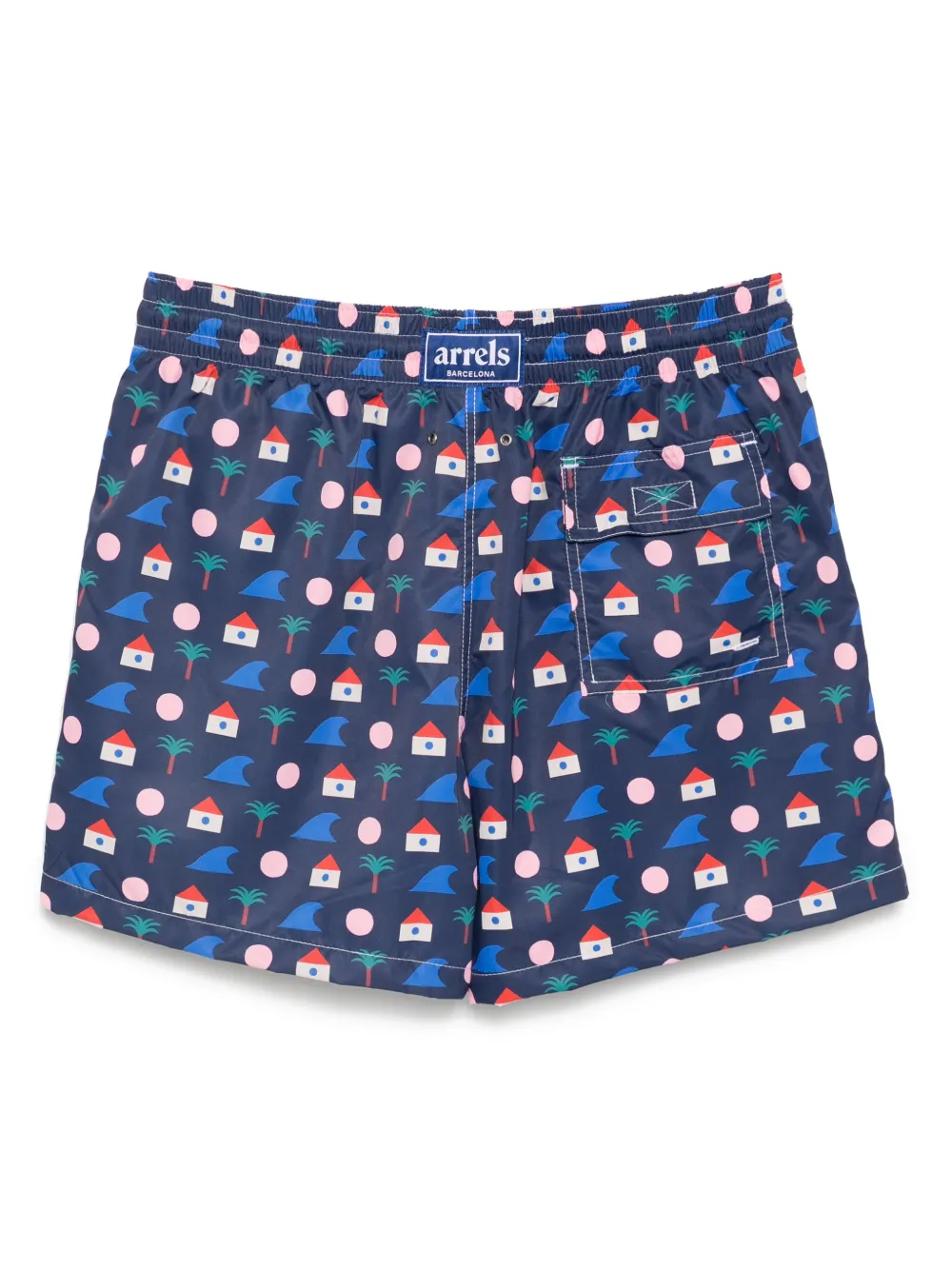 marineblauw elastische tailleband met trekkoord twee ingenaaide zijzakken Zwemkleding moet over je eigen kleding worden aangepast.