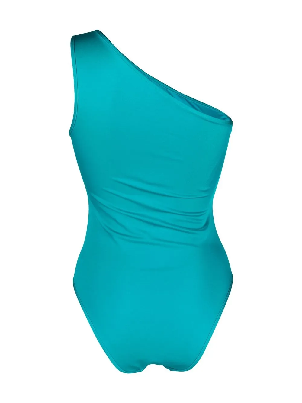 Turkoois, stretch design, asymmetrisch, logoprint, asymmetrische hals en mouwloos. Zwemkleding moet over je eigen kleding worden aangepast..