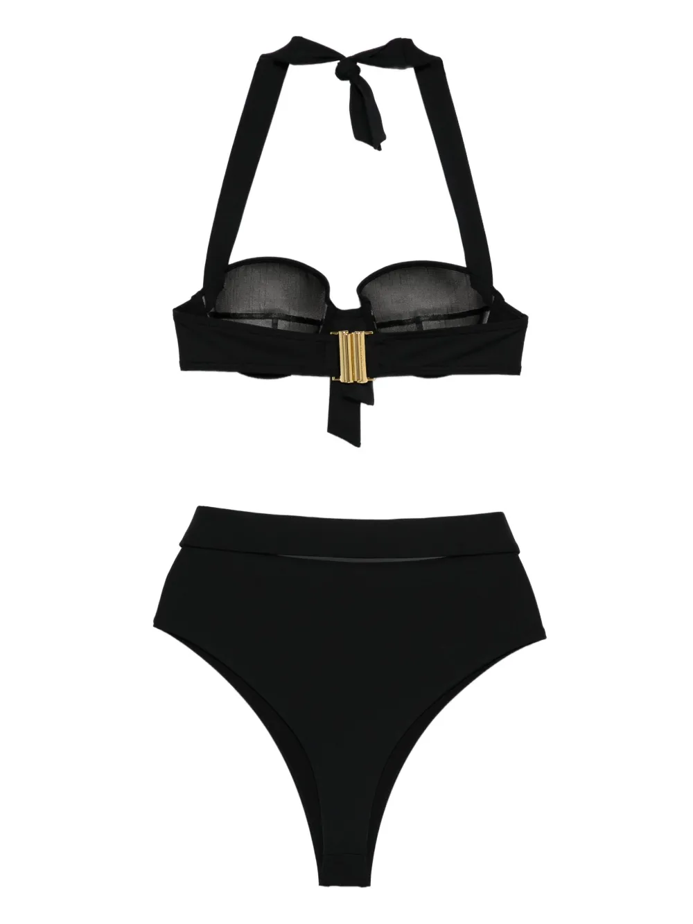zwart halternek goudkleurige gesp high waist slip beugel top Zwemkleding moet over je eigen kleding worden aangepast.