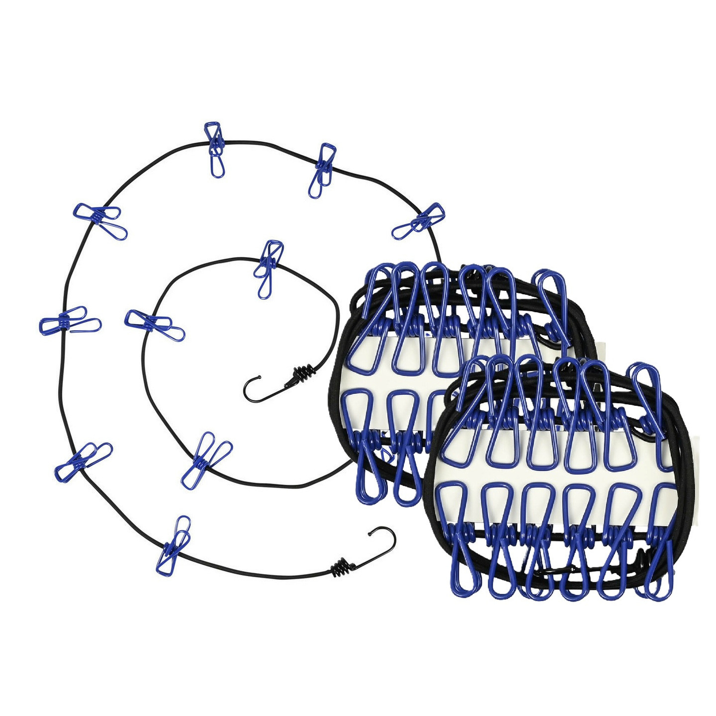2x benson waslijn inclusief 12 knijpers. Deze waslijn is een elastische lijn die je eenvoudig uitrekt van 190 tot 320 cm. Ideaal voor thuis of op reis. Dankzij de handige haken hang je hem snel op tussen bomen, palen of muren. De meegeleverde knijpers zijn al bevestigd, zodat je direct je was kunt ophangen. Lichtgewicht, compact en superhandig voor onderweg of een kleine ruimte. Lengte waslijn: ca. 1,9 m. inclusief 12 knijpers.