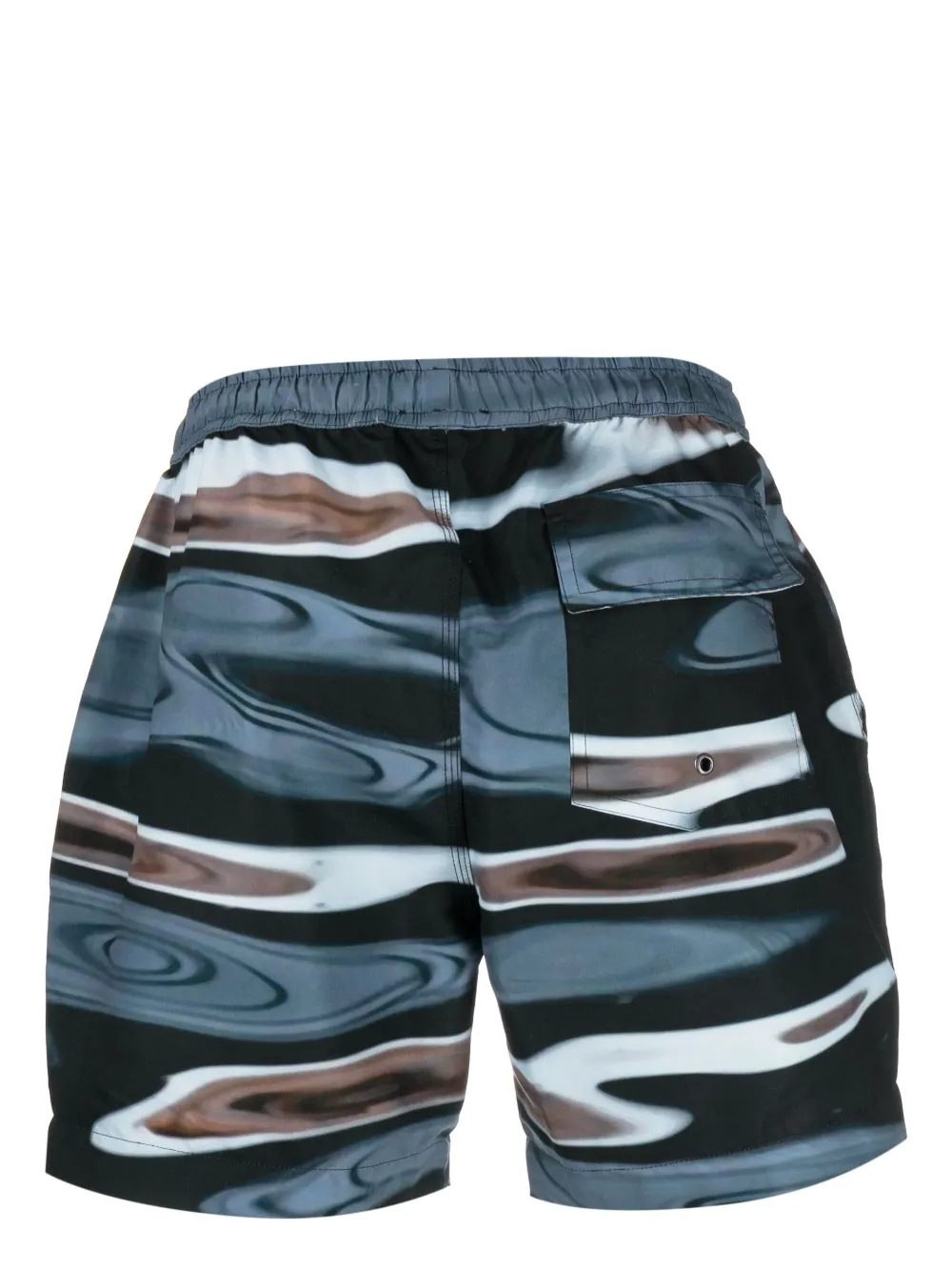 blauw/veelkleurig abstract patroon elastische tailleband met trekkoord twee steekzakken aan de zijkant klepzak aan de achterkant Zwemkleding moet over je eigen kleding worden aangepast.