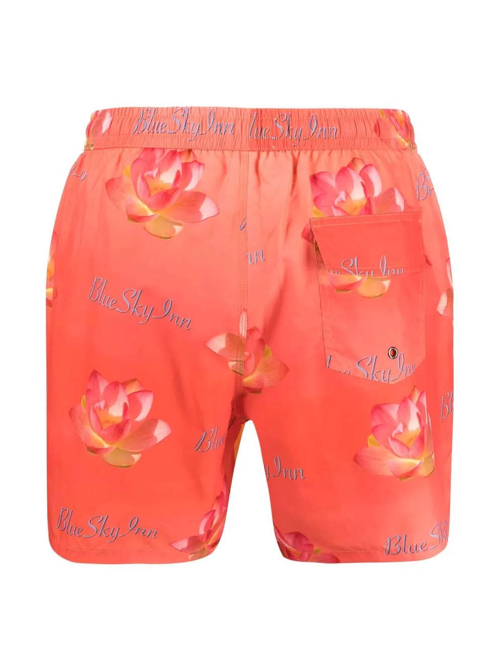 Kleurverloop, grafische print , elastische trekkoord tailleband en achterzak met klep. Zwemkleding moet over uw eigen kleding worden aangepast. Doe dit niet als u eenmaal het water in springt.