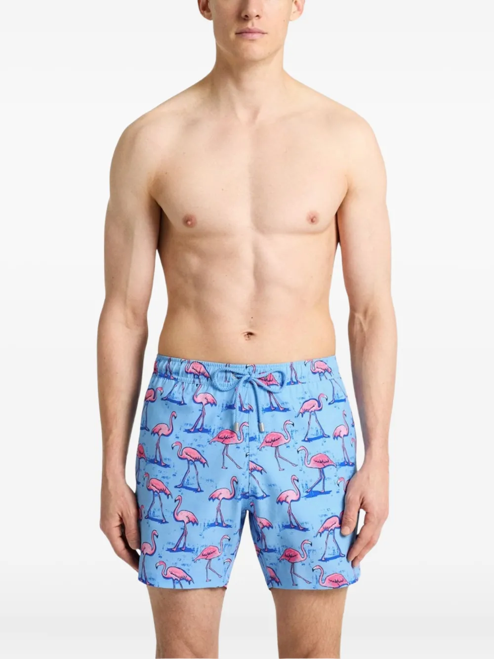 lichtblauw flamingoprint trekkoordsluiting elastische tailleband all-over patroon Zwemkleding moet over je eigen kleding worden aangepast.