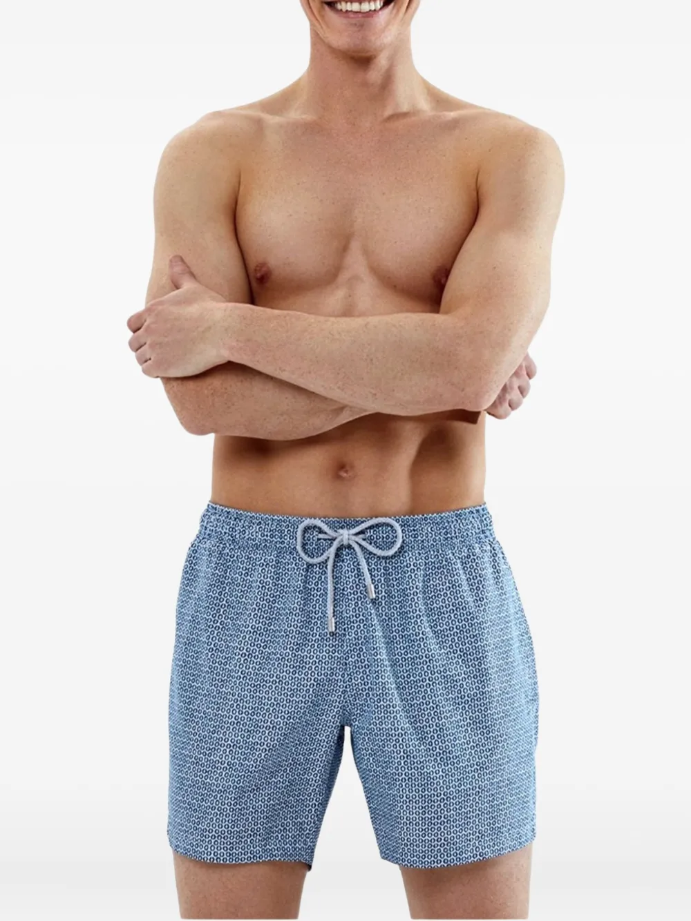 blauw geometrische print elastische taille met trekkoordsluiting steekzijzakken Zwemkleding moet over je eigen kleding worden aangepast.