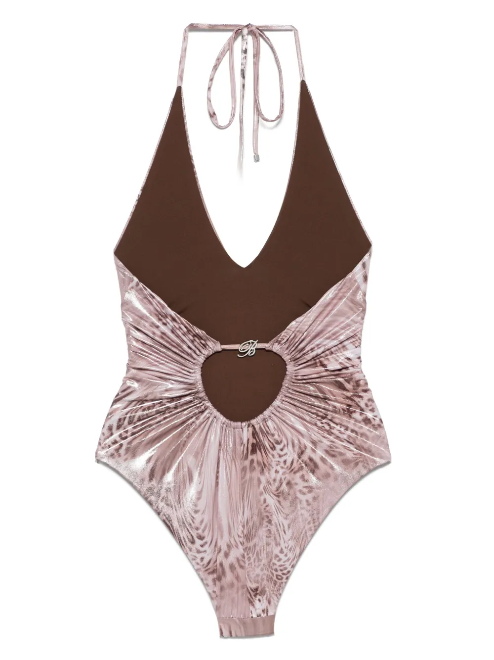 animalier bruin halternek striksluiting logoplakkaat open hiel Zwemkleding moet over je eigen kleding worden aangepast.