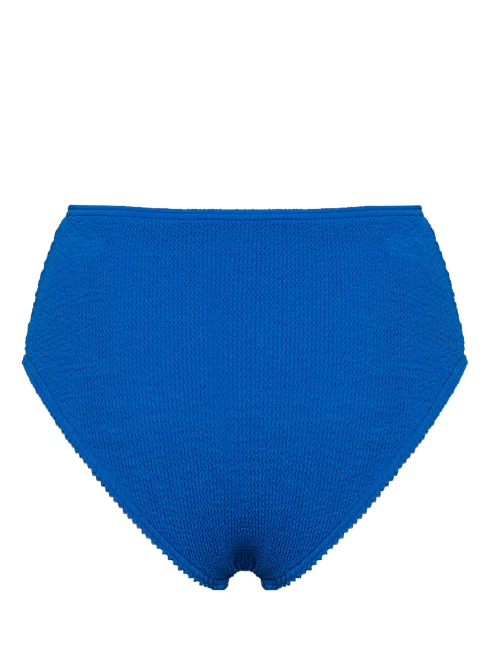 kobaltblauw stretch design gerecyclede nylonmix seersucker textuur gekreukte afwerking high waist hoog uitgesneden Zwemkleding moet over je eigen kleding worden aangepast.