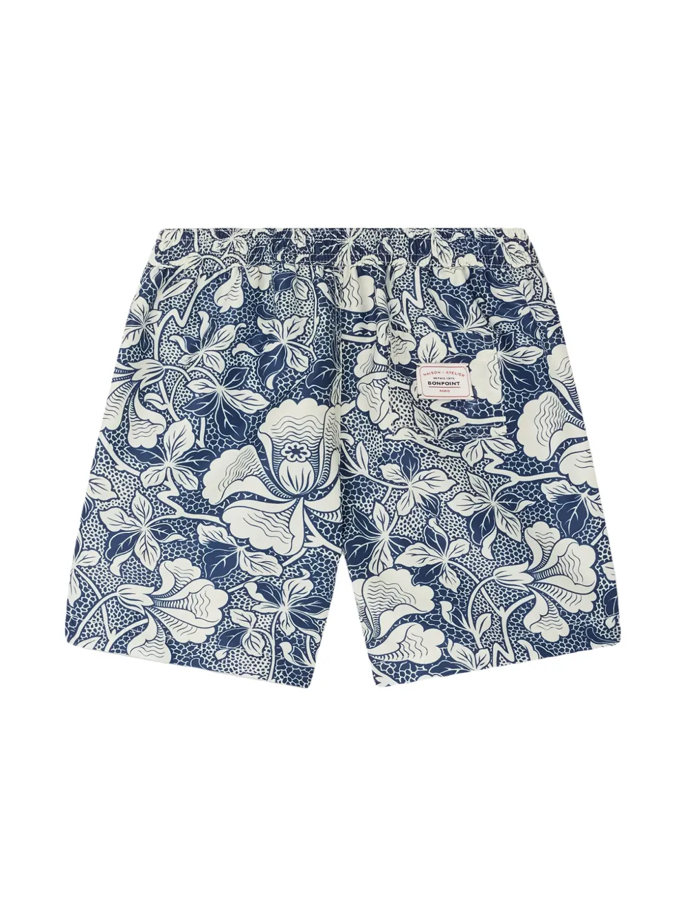 kobaltblauw trekkoordsluiting bij de taille bloemenprint opgestikte zak aan de achterkant Zwemkleding moet over je eigen kleding worden aangepast.