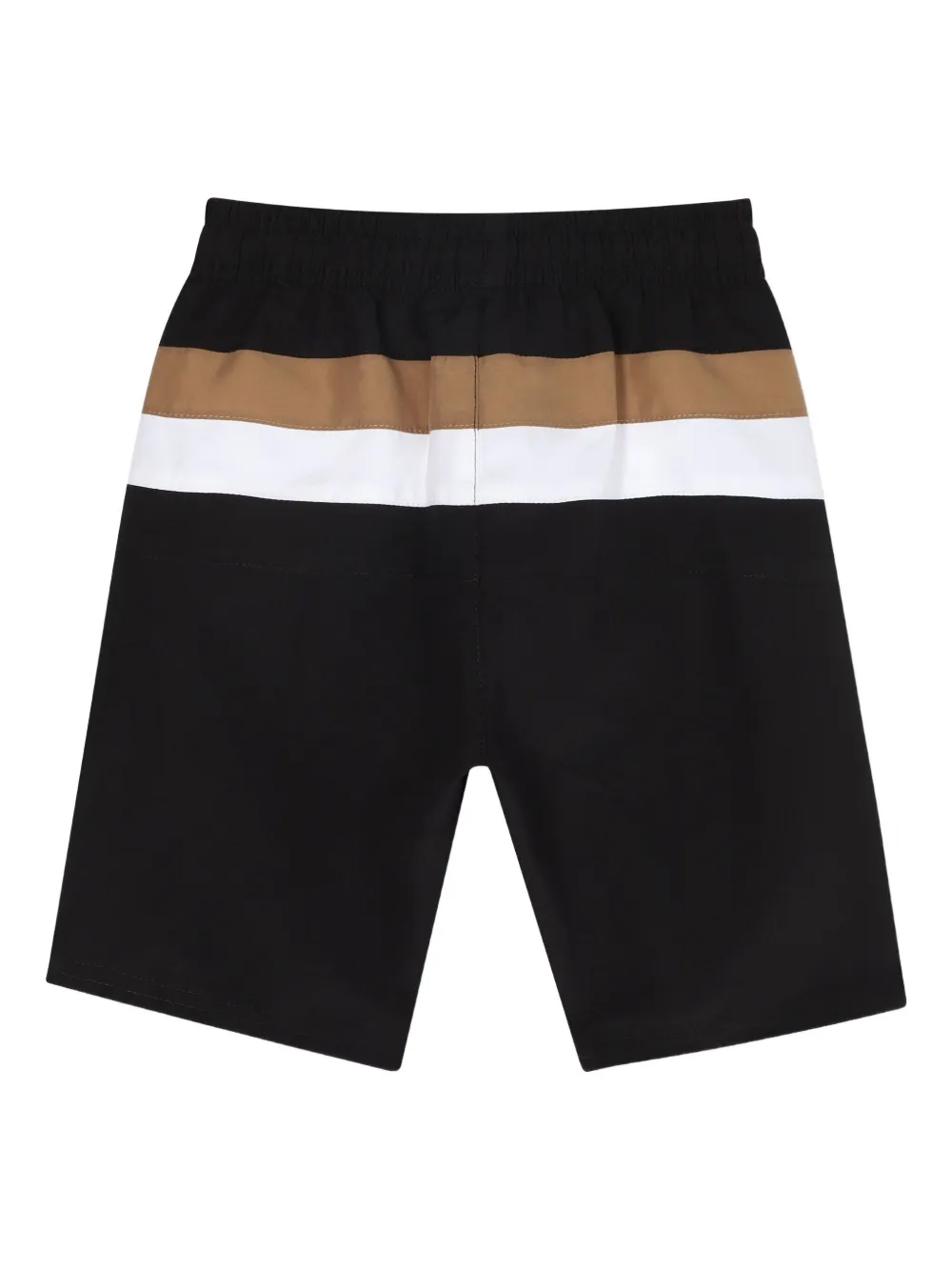BOSS Kidswear Gestreepte zwembroek – Zwart