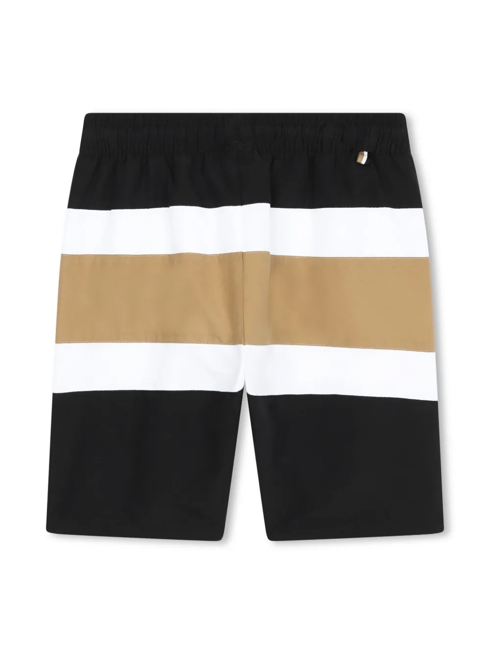 zwart/bruin/wit design met colourblocking logoprint op de voorkant elastische tailleband met trekkoord twee steekzakken aan de zijkant Zwemkleding moet over je eigen kleding worden aangepast.