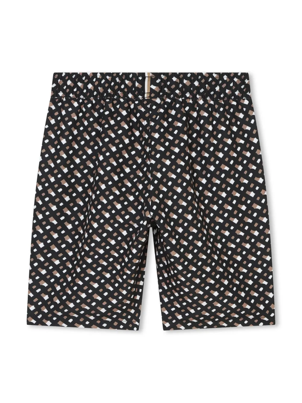 zwart/wit koffiebruin monogram-print trekkoordsluiting rechte zoom Zwemkleding moet over je eigen kleding worden aangepast.